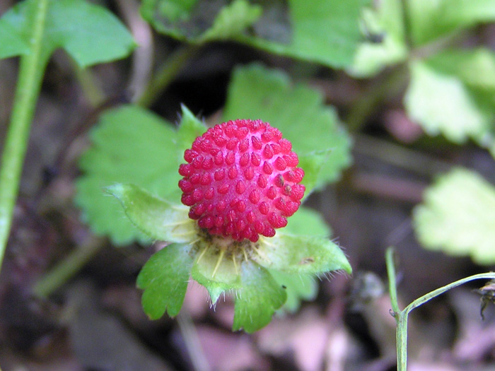| 類似 | 「ヘビイチゴ」は、葉が明緑色で、副萼片は萼片と同じくらい。果床は果床は淡紅色で、痩果は皺があって光沢がない。 「ヤブヘビイチゴ」は、葉が濃緑色で、副萼片は萼片と比べて大きく目立つ。果床は濃紅色で、痩果は光沢がある。 |
