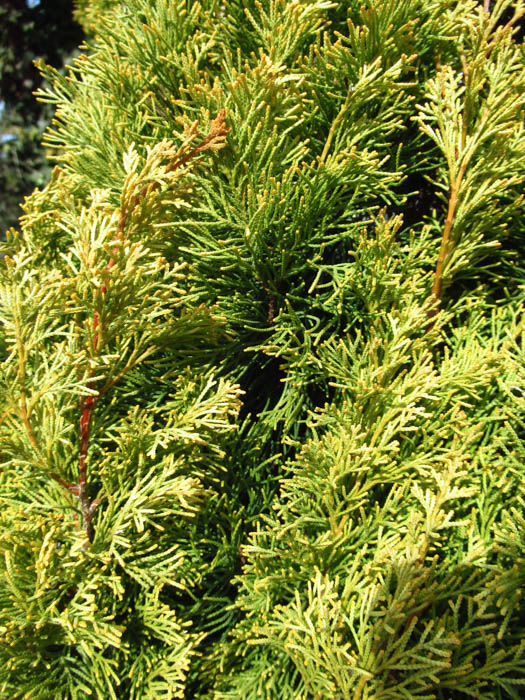 | 解説 | 樹形は狭円筒形で先が尖る。葉色は一年中黄金色で、冬にはやや赤味がかる。 |
