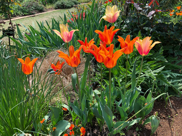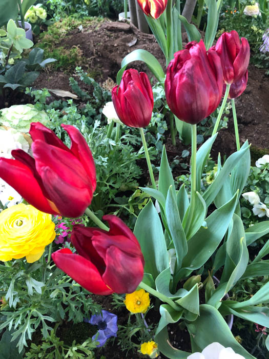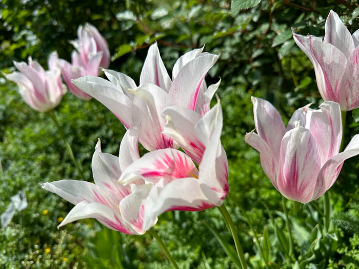 | 品種 | 多数の園芸品種がある。4月中旬に咲く早咲き、4月下旬~5月上旬に咲く晩咲き、その中間型がある。花の咲き方には、一重咲き、八重咲き、ユリ咲き、パーロット咲き、フリンジ咲き、枝咲きなどがある。花色は赤、黄、白、桃、青紫、暗紫色、橙、緑、黒、複色など。 |